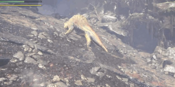 准备好东西之后就去找怪物吧,然后就是攻击怪物了,一直打怪物,知道怪物被打到频死阶段,就是走起来一瘸一拐的样子时,我们就可以对它进行捕获了。下面举个列子给大家看: