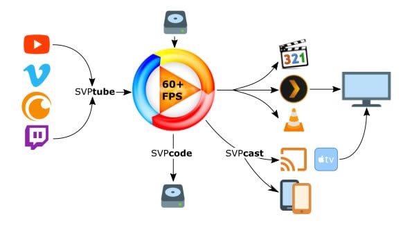 4、它的SVPtube 2扩展程序可以使用SVP和/或任何后处理功能,在您喜欢的视频播放器中观看几乎任何在线视频。