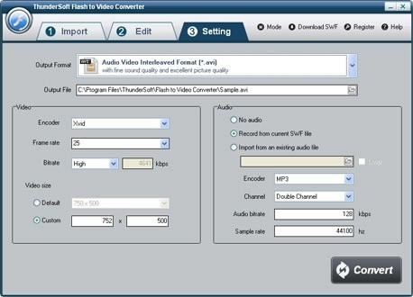 Converter是一款专业实用的转换flash格式文件的工具,软件能够帮你将flash文件转换为avi格式。能够将Flash、SWF、AVI格式文件的丰富的编辑功能,如作物,添加水印。