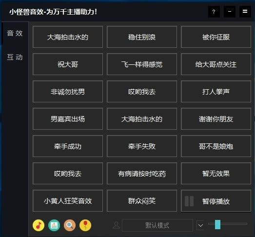 小怪兽音效助手为直播类主持人提供音效辅助的软件,适用于QQ群,虎牙直播等平台,除了为用户提供音效外,还支持一些小功能,如抽奖、看图猜成语等,还支持自定义快捷键。
