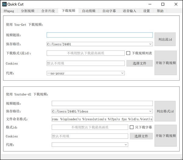 这个界面提供了两个命令行工具的图形界面用于下载视频,*简单的用法就是将链接复制进去,然后点击下载。支持的网站有很多比如优酷、B站、You Tube、P站(逃)……