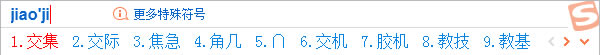 | 办公软件是指可以进行文字处理、表格制作、幻灯片制作、图形图像处理、简单数据库的处理等方面工作的软件。目前办公软件朝着操作简单化,功能细化等方向发展。办公软件的应用范围很广,大到社会统计,小到会议记录,数字化的办公,离不开办公软件的鼎力协助。另外,政府用的电子政务,税务用的税务系统,企业用的协同办公软件,这些都属于办公软件。 集合论中,设A,B是两个集合,由所有属于集合A且属于集合B的元素所组成的集合,叫做集合A与集合B的交集,记作A∩B。那么WPS/Word中交集符号怎么打?这里,小编将分享几个方法给大家做参考。 交集符号怎么打之拼音输入法第一步:将电脑的输入切换为拼音输入法(搜狗拼音、百度拼音或者QQ拼音都可以); 第二步:直接在WPS文字(WPS办公软件)/Word文档输入『交集』的中文拼音『jiaoji』,选择第5项,即可打出『∩』;